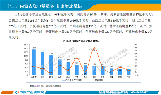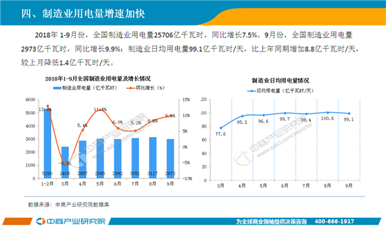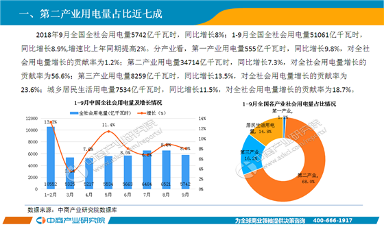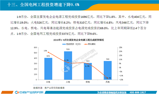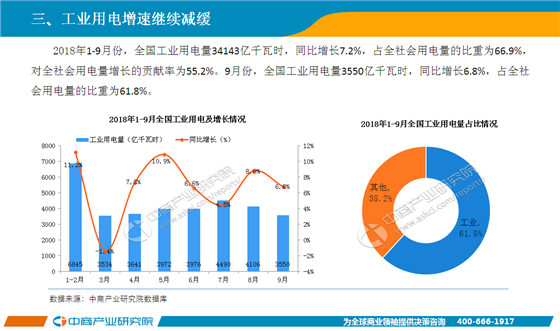 2018年1-9月全社会用电增速同比提高,第三产业和城乡居民用电保持快速增长;工业和制造业用电保持较快增长,增速低于全社会用电量平均水平;四大高载能行业用电均实现正增长,合计增速低于制造业平均水平;发电装机容量增速同比回落,核电和风电发电量保持快速增长;各类型发电设备利用小时均同比提高,并网风电设备利用小时为近年新高;全国跨区、跨省送出电量快速增长;全国基建新增装机容量同比减少,其中火电新增装机减少较多。